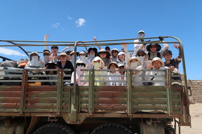 “沙漠,我们来啦!”站在绿皮卡车上的治沙队成员向沙漠高喊着,心中是抑制不住的激动与兴奋。一路乘坐十五个小时的火车、三小时的大巴、一个小时的绿皮卡车,从西南巴蜀到沙漠腹地,信号逐渐消失,车皮越发滚烫,但丝毫没有磨灭治沙队成员的热情。