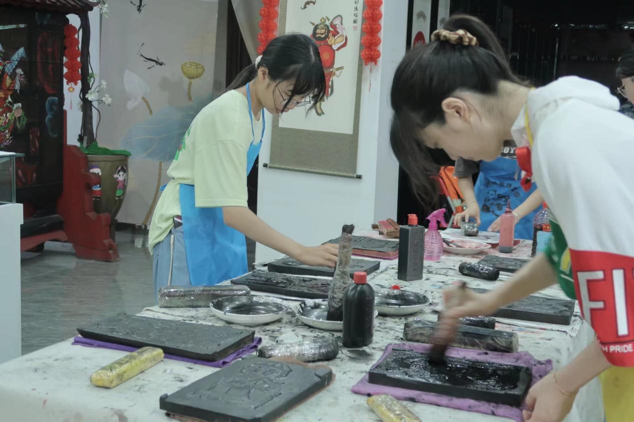 滚球app官网“画境拾遗”社会实践小队队员体验年画拓片