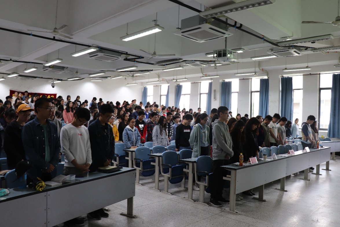 主题会现场与会师生为革命先辈们默哀