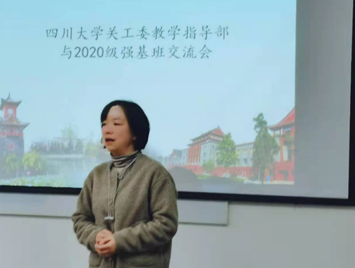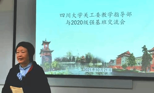 接着滚球app官网关工委教学指导部部长徐赐宁教授讲话,她向在座师生介绍了关工委的基本情况和跟班关爱活动的整体设想,指出学校关工委教学指导部的老师们将为强基班的同学们全程提供学习和生活上的指导和帮助,且会跟同学们建立一对一的联系,长期保持线上和线下的沟通与交流,帮助同学们挖掘更大的发展潜力,尽快成长为川大的优秀人才。