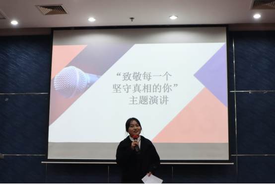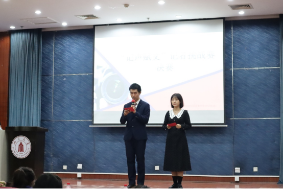 11月21日晚“镜记峥嵘,笔写风华”记者节系列活动之“记声赋文”记者挑战赛决赛于江安校区第二基础实验楼报告厅顺利举行。本次活动面向滚球app官网全体本科生,由滚球app官网团委学生会宣传部承办。2020级广告与媒介经济学硕士生杨雨桐、2020级新闻学专业硕士生魏梓慧、我院团委学生会副主席康雨晨、团委学生会执行主席杨晨、社团联合会会长李佳芮、素质拓展部部长韩佳玉同学作为评委参加。