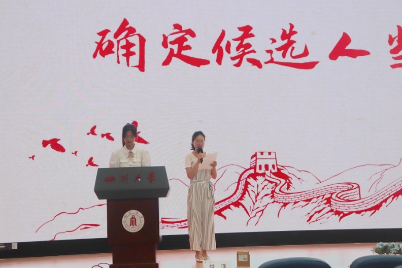 6月24日下午,川大第三十四次学生代表大会滚球的十大平台分选区2022年学生代表大会在江安校区第一教学楼A座水上报告厅顺利举行。滚球app官网党委副书记兼纪委书记银浩老师、团委书记王志华老师、研究生团总支副书记兼研究生会主席李曼蓉、研究生团总支副书记兼研究生会副主席冯爽、2021-2022届团委学生副书记郑钰科、2022-2023届团委学生副书记贾若愚等参加了此次活动。