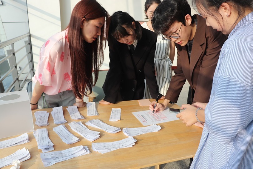 选举计票过程在监督员李曼蓉的监督下进行。最终,根据学代表无记名投票结果,王尚当选滚球app官网2022-2023学年学生会主席,王昊洋当选学生会副主席。最后,滚球app官网团委书记王志华老师作总结致辞,新一届学生会主席王尚宣布大会圆满闭幕。