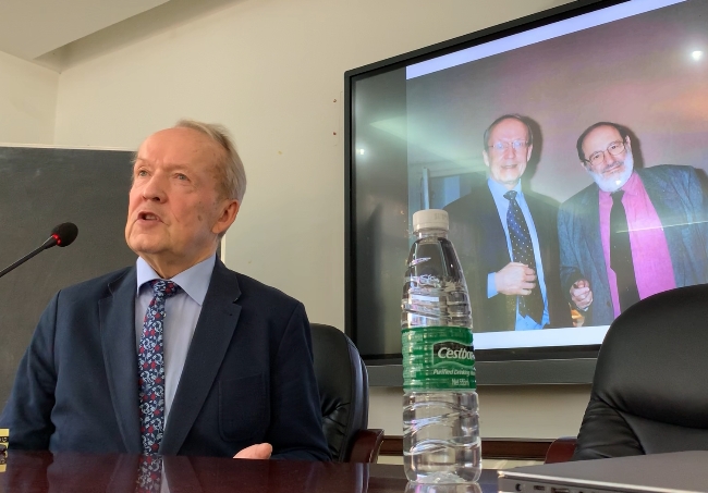 2019年10月28日下午,埃罗·塔拉斯蒂教授专题讲座“存在符号学的理论基础”在滚球app官网望江校区文科楼251会议室举行。本次讲座由滚球app官网符号学与传媒学研究所所长赵毅衡教授主持。研究所胡易容教授、陆正兰教授、饶广祥副教授、赵星植副教授、董明来老师、薛晨老师等参加本次讲座。来自成都兄弟院校同仁,以及研究所部分硕士、博士研究生也参加了本次学术讲座。