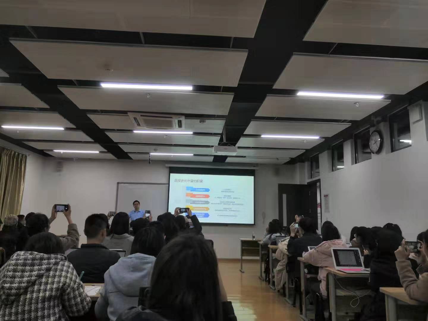 这是我第一次见到传说中的沈阳老师,他完全没有想象中严肃、刻板的理工男的气质,反而通过他风趣幽默的讲述将一个个原本抽象陌生的概念形象化。从互联网到物联网,再到体联网,最终到脑联网,沈老师的讲座不仅延展了我的思维深度,也拓展了我的视野广度。技术与人的关系、注意力与洞察力等话题更是给我的研究方向带来了不少启发。真的是乘兴而来,尽兴而归,为沈阳老师点赞,为组织讲座的学院点赞!