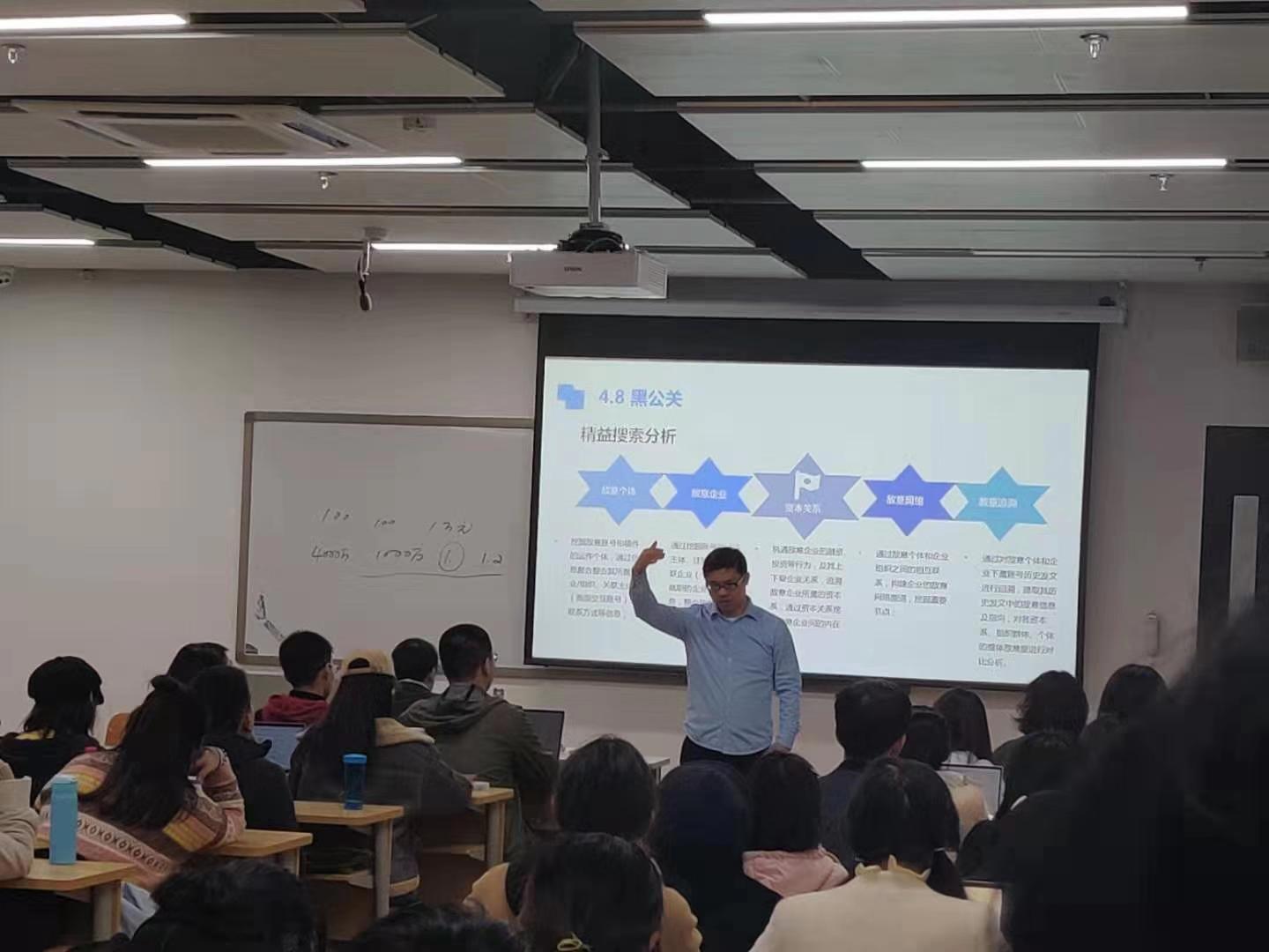讲座开始,沈阳教授展示了其微信二维码名片,欢迎同学们扫码加他为微信好友,并透露自己目前已有超过三万个微信好友。他说,“今天做媒体要从朋友圈开始,朋友圈就是人设的起点。只有你找到自己,世界才能找到你。”他用三个词来界定自己:大数据、新媒体、网络舆论。