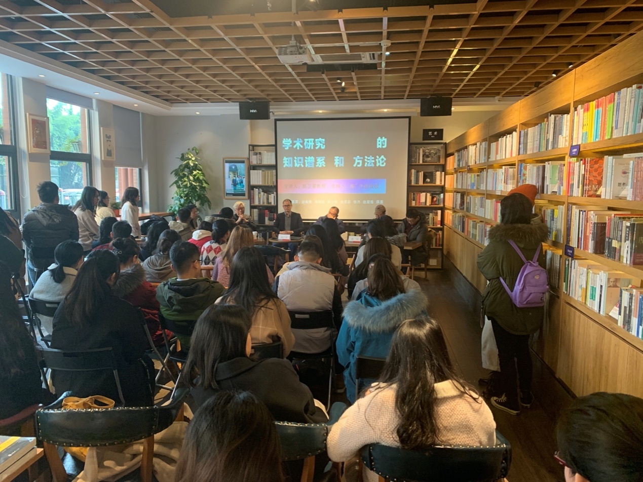 19日上午,中国传媒大学陈卫星教授在库闻书店就“学术研究的知识谱系和方法论”举办座谈会。座谈会由滚球app官网广告学与符号学教研室主任饶广祥副教授主持,滚球app官网赵毅衡教授、胡易容教、朱至刚教授、徐沛副教授、赵星植副教授作为对谈嘉宾参会。陈卫星教授就传播学的发展路径提出自己的见解,赵毅衡教授等人围绕中西方传播学的异同进行了研讨,多名师生就相关问题发言提问,现场气氛活跃。