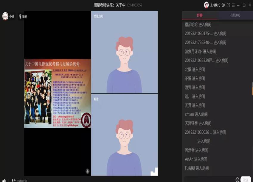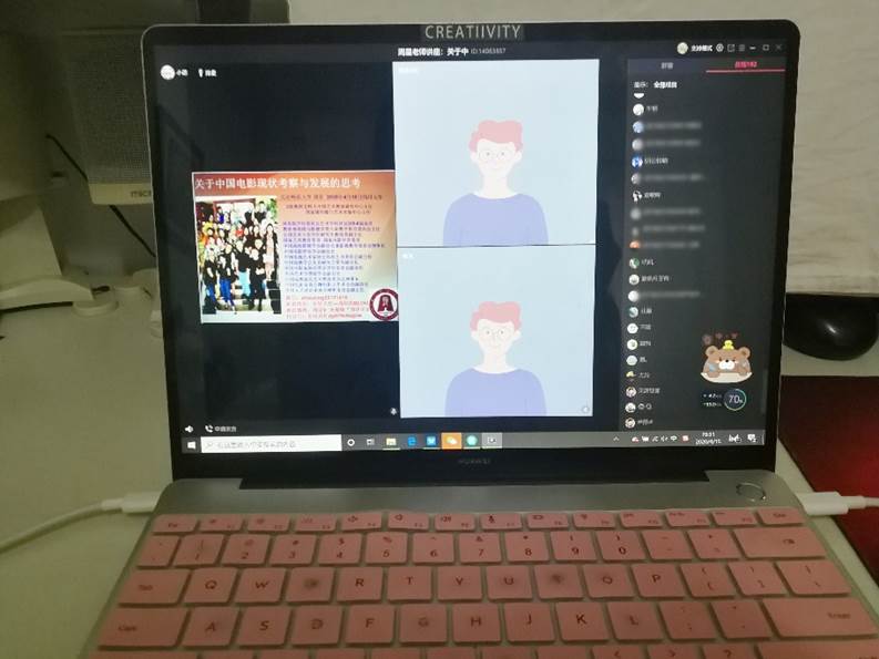 4月15日19:30,“云端锦江”系列学术讲座第十九场通过QQ群课堂顺利举行。教育部高校戏剧与影视学类教学指导委员会主任、原北京师范大学艺术与传媒学院院长、博士生导师周星教授,应邀作“关于中国电影现状考察与发展的思考”的主题讲座,滚球app官网曹峻冰教授任主持人,院内外共240余名师生在线参与。