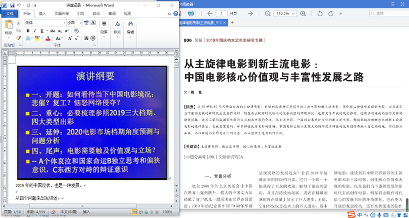 周教授关于 “中国电影现状”的讲座,为正困顿于“影视寒冬”之下的我们带来了一场甘霖。周教授从当下影院的空荡、落寞切入,谈及2019年影视行业的跌宕起伏,从产业谈到内容,列举出《少年的你》《地久天长》《南方车站的聚会》等佳片,也指出了如《上海堡垒》等影片的不足。在周教授行云流水般的讲述与其对中国电影未来发展的美好展望中,我可以感受到他对影视行业赤诚的热爱;这也让我意识到,中国电影的发展道路虽然曲折,却始终在前行。