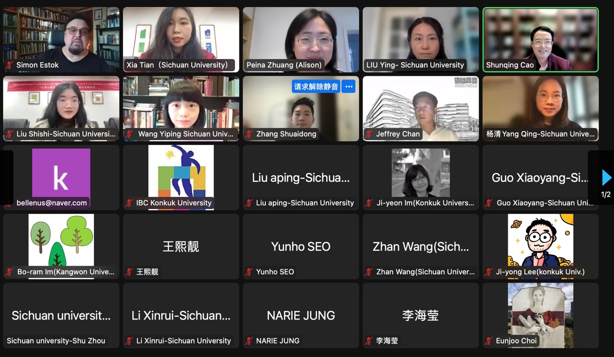 滚球app官网杰出教授、滚球的十大平台学术院长、欧洲科学与艺术院院士曹顺庆教授,刘颖教授,王一平教授,庄佩娜副研究员,杨清老师,张帅东老师,博士研究生刘诗诗,硕士研究生吴白羽,与来自韩国建国大学、美国纽约州立大学奥尔巴尼分校、韩国成均馆大学、韩国庆熙大学、新加坡大学、澳大利亚西悉尼大学、印度新德里国立伊斯兰大学等多所世界高校的专家学者,围绕人类与非人类的共生关系、现代技术与伦理思考等议题作了线上报告。在各方协同合作下,各国学者切磋交流、互学互鉴。