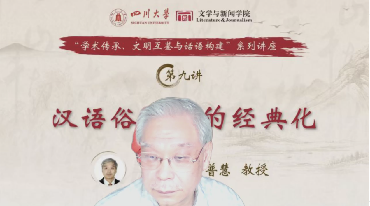 2023年4月13日,滚球app官网“学术传承、文明互鉴与话语构建”系列讲座第九讲顺利举办,四川省学术与技术带头人、滚球app官网教授委员会副主任委员张弘(普慧)教授在线为全校200余名师生作“学术传承与人文精神”的主题报告,本次讲座由我院何剑平教授主持。