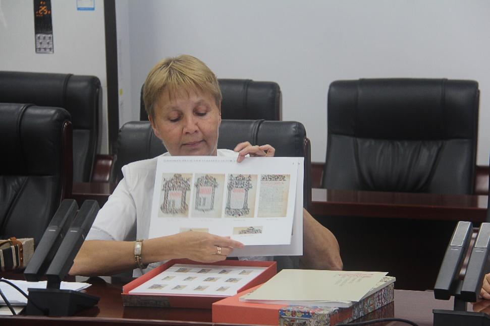 俄罗斯科学院斯·阿·谢米亚齐科研究员展示手稿影印本