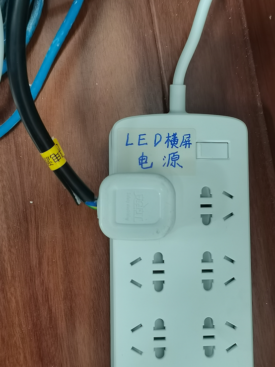 请打开机柜后面LED标题横屏的插线板开关,LED横屏将点亮,如下图打开开关: