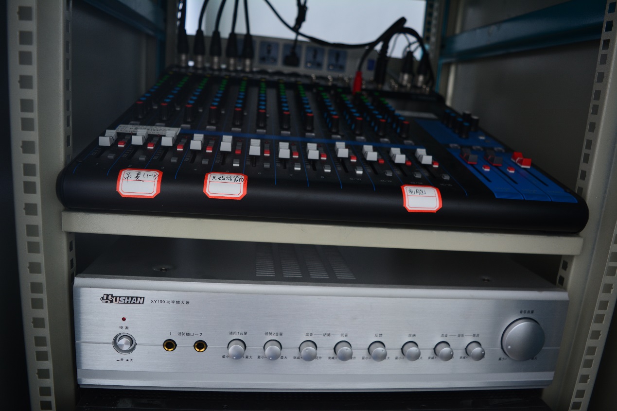 3) 调音台及功率放大器(机柜内第一、第二个机器)