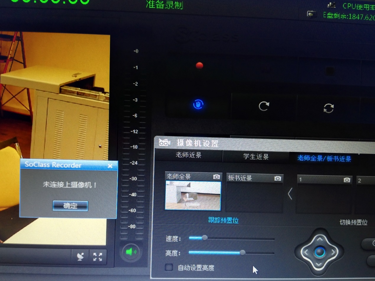 对摄像头的调整分为三个部分:老师近景/学生近景和老师全景/板书近景。