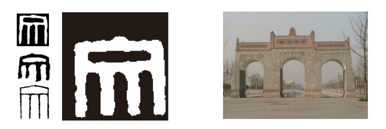 新版视觉标志外部以吴昌硕、齐白石、李叔同等名家常用的篆刻“文”字为基础进行设计。该字造型和学校的“老校门”具有相似性,都具备厚重、质朴的风格。设计团队综合两者风格,融合设计、图底交融,不仅巧妙融入了学校的传统元素,还表达了学院长期积淀的文化韵味和历久弥新的精神面貌。