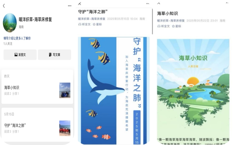 从课堂理论到海边实践,这群大学生用一年时间,让“海洋绿肺”重新呼吸。如今他们带着采集的150余份标本走进陵水中小学,用公众号等网络平台科普海草知识,还联合当地渔民成立“海草保护志愿队”。“课本上的‘固碳储碳’,现在变成了水下3米处摇曳的草叶。”队员们蹲在滩涂上记录新数据的身影,已成为海岸线上一道青春的风景线。期待更多青年加入海草保护行列,让“蓝色碳库”持续为海洋生态可持续发展赋能,共护蔚蓝家园。