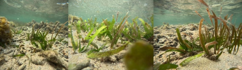 2025年3月,团队在小东海启动野外移植。退潮时,队员们蹚着齐腰海水,用铁铲在沙质底质挖坑,将椰壳包裹的海草幼苗逐一种下。“海浪冲得站不稳,就手拉手围成圈固定幼苗。”队长高泺菁回忆,两个月里他们在3处修复区种下1.2万株海草,手指被海水泡得发白,却笑称这是“海草勋章”。为监测效果,他们每月潜水记录——2025年4月的水下影像显示,部分泰来草已长出新分株,根系深扎椰壳基质,形成初步的植被群落。
