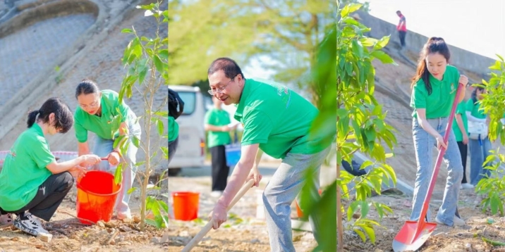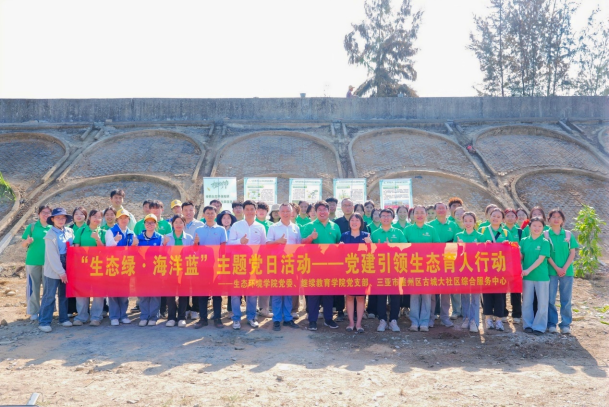 在第47个植树节来临之际,为践行习近平生态文明思想,3月9日,beat365唯一官方网站党委联合继续教育学院、三亚市社区教育指导中心和三亚市崖州区古城大社区综合服务中心在三亚市崖州区开展“党建引领‘社区教育+生态实践’”主题党日活动。活动以“劳动教育+科技助农+红色传承”为主线,通过义务植树、环境保护科普宣传、产业调研、思政课和微党课等形式,将生态文明教育、历史文化传承与乡村振兴实践深度融合,彰显了新时代beat365唯一官方网站在服务地方方面的基层党组织党建引领力。