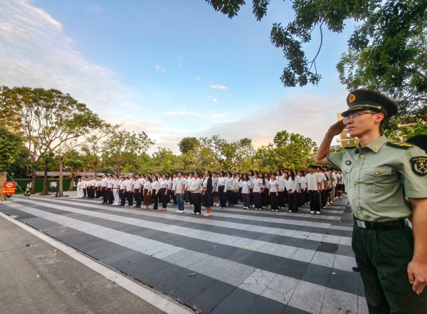活动伊始,全体人员按指定位置整齐列队。随着主持人国际学院李柯蒙同学宣布仪式开始,国旗护卫队迈着铿锵有力的步伐入场。在雄壮的国歌声中,五星红旗冉冉升起,全体人员肃立注目,致敬国旗、致敬祖国,现场洋溢着庄严肃穆的氛围。