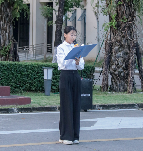 国际学院2025级旅游管理(中外合作办学)2班邓淑同学则从家国情怀、躬身践行、时代担当三个维度展开演讲。她强调,高尚之德既要传承“仁义礼智信”的传统文化精髓,也要落实在课堂诚信、校园文明、志愿服务等具体行动中,号召青年学子以青春之力勇担时代使命,让品德之光照亮追梦征程。